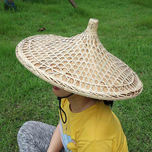 Chinese Natural Bamboo Braid Hats Ancient Conical Coolie Big Hat Fishing Hat